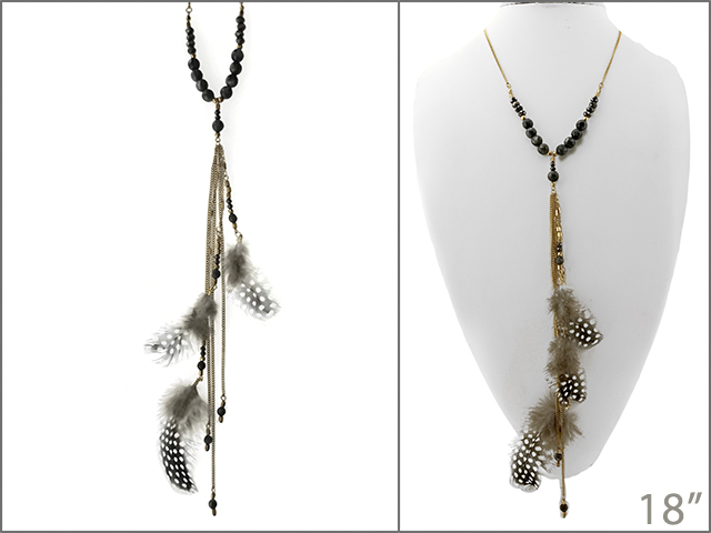 Tags: Necklace, Feather, Semi Precious Stone, Black, Gold, Short