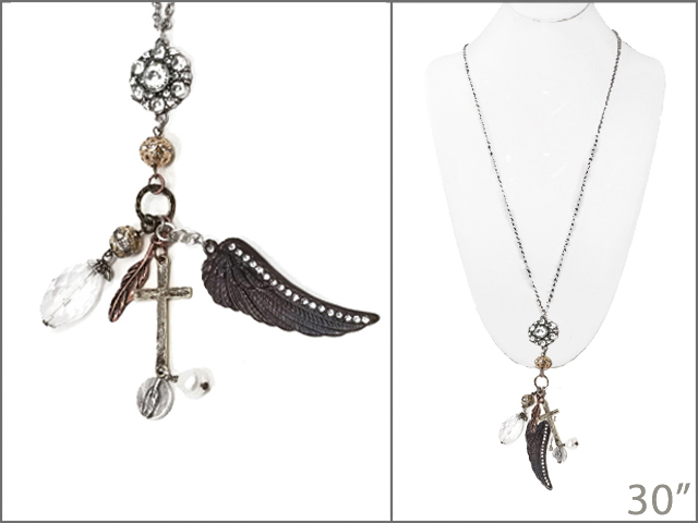 Tags: Necklace, Charms, Cross, Pearl, Themed, Four Tone, Long