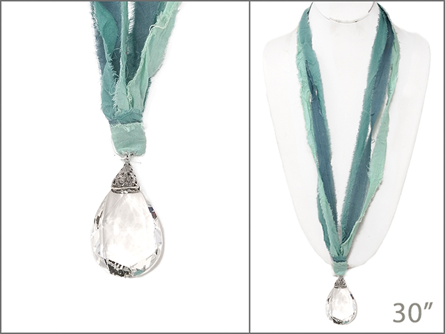 Tags: Necklace, Glass, Green, Silver Burnish, Long