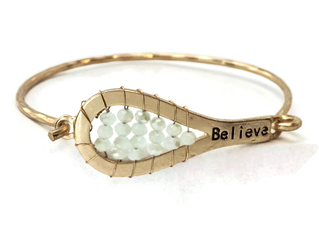 "BELIEVE" TEARDROP SHAPE BEADED WIRE BR.