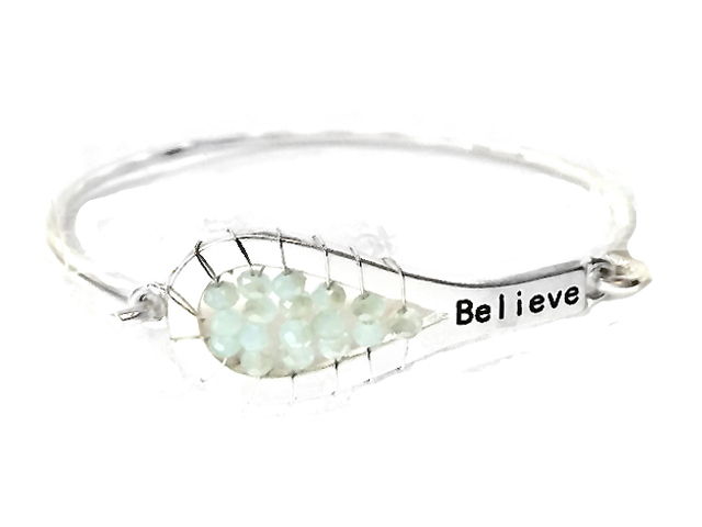 "BELIEVE" TEARDROP SHAPE BEADED WIRE BR.