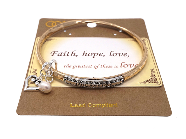 "FAITH HOPE LOVE" TWO TONE TWIST BANGLE