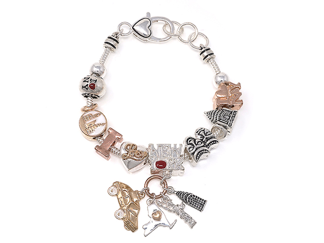 Tags: Bracelet, Multi Beads, Charms, Multi Beads, Themed, Red, Tri Tone, Clip On