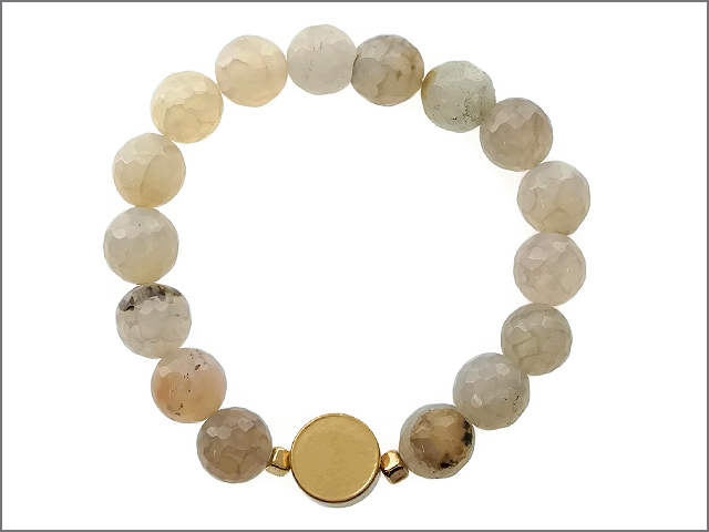Tags: Bracelet, WINNITY, Semi Precious Stone, Cream, Worn Gold, Stretch