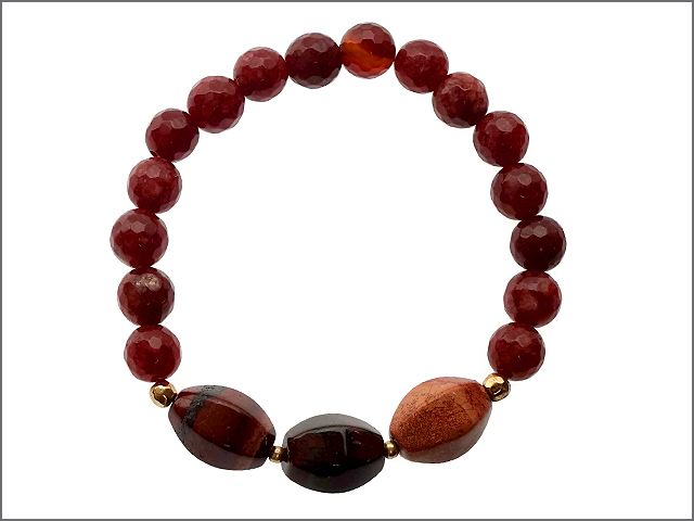 Tags: Bracelet, WINNITY, Semi Precious Stone, Coral, Worn Gold, Stretch