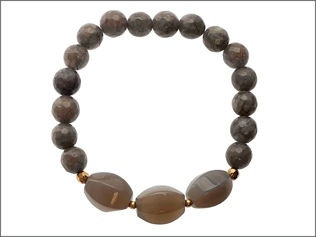 Tags: Bracelet, WINNITY, Semi Precious Stone, Gray, Worn Gold, Stretch