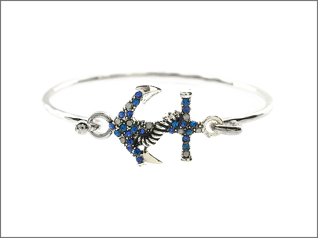 Tags: Bracelet, SEASONAL, Mixed Stone, Nautical, Seasonal, Wire, Blue, Multi, Silver, Wire hook