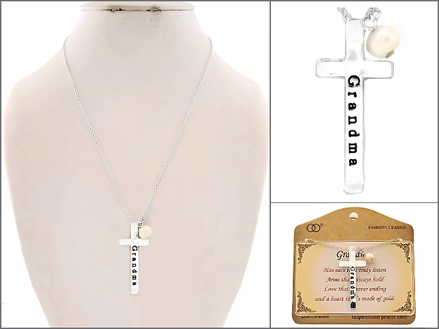 Tags: Necklace, RELIGIOUS, Cross, Cream, Silver, Short, Pearl