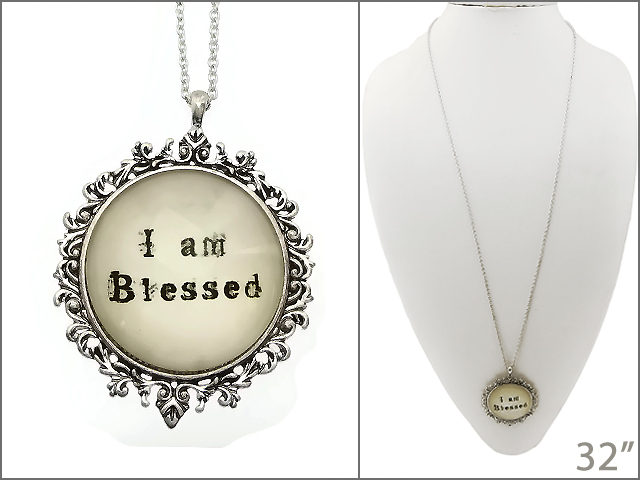 Tags: Necklace, Designer Inspired, Glass, Phrases / Verses / Christianity, Silver Burnish, Long