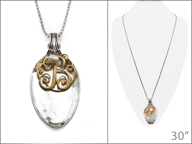 "B" MONOGRAM SPOON PENDANT 30" NK.