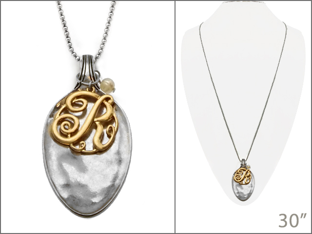"R" MONOGRAM SPOON PENDANT 30" NK.