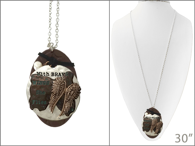 Tags: Necklace, Inspiration, Leather, Pearl, Phrases / Verses / Christianity, Brown, Silver, Tri Tone, Long