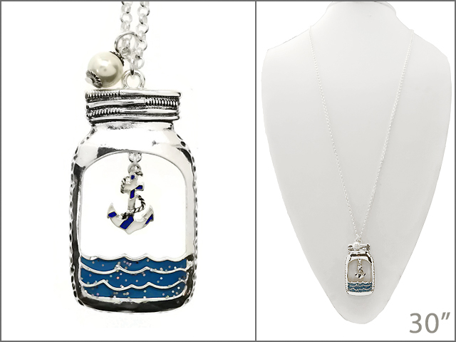 Tags: Necklace, Bottle, Nautical, Pearl, Seasonal, Blue, Multi, Silver, Long