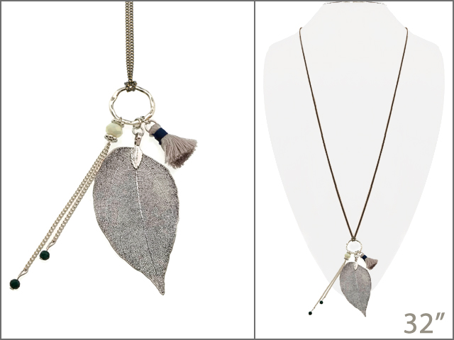 Tags: Necklace, WINNITY, Charms, Tassel, Gray, Silver Burnish, Long