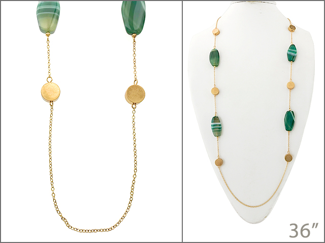 Tags: Necklace, WINNITY, Genuine Stone, Green, Brass, Worn Gold, Long