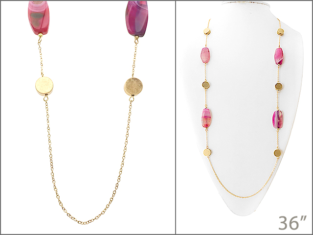 Tags: Necklace, WINNITY, Genuine Stone, Pink, Brass, Worn Gold, Long