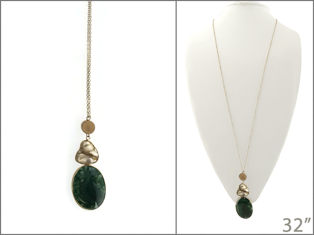 Tags: Necklace, WINNITY, Genuine Stone, Pearl, Green, Brass, Worn Gold, Long