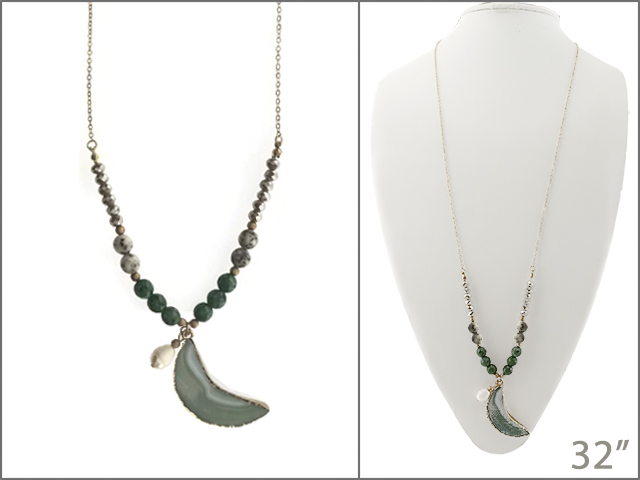 Tags: Necklace, WINNITY, Genuine Stone, Mixed Stone, Pearl, Green, Gold, Long