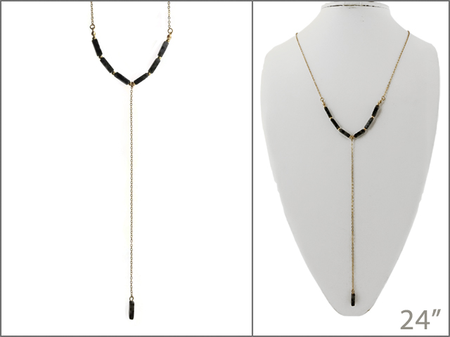 Tags: Necklace, WINNITY, Genuine Stone, Black, Worn Gold, Long