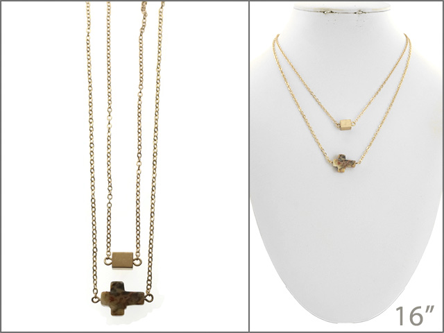 Tags: Necklace, WINNITY, Cross, Genuine Stone, Layered, Natural, Worn Gold, Short