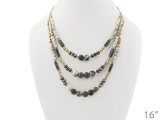 Tags: Necklace, WINNITY, Genuine Stone, Layered, Mixed Stone, Black, Gold, Short