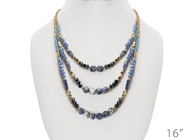 Tags: Necklace, WINNITY, Genuine Stone, Layered, Mixed Stone, Blue, Gold, Short
