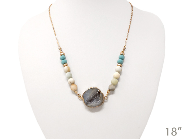 Tags: Necklace, WINNITY, Druzy, Semi Precious Stone, Green, Worn Gold, Short