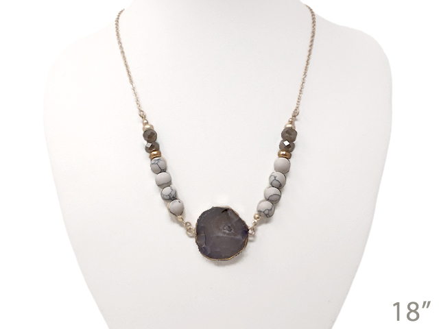 Tags: Necklace, WINNITY, Druzy, Semi Precious Stone, White, Worn Gold, Short