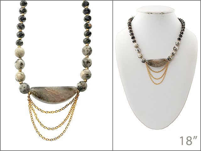 Tags: Necklace, WINNITY, Chain, Genuine Stone, Layered, Black, Worn Gold, Short