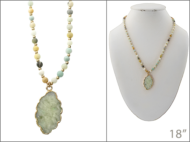 Tags: Necklace, WINNITY, Genuine Stone, Green, Worn Gold, Short