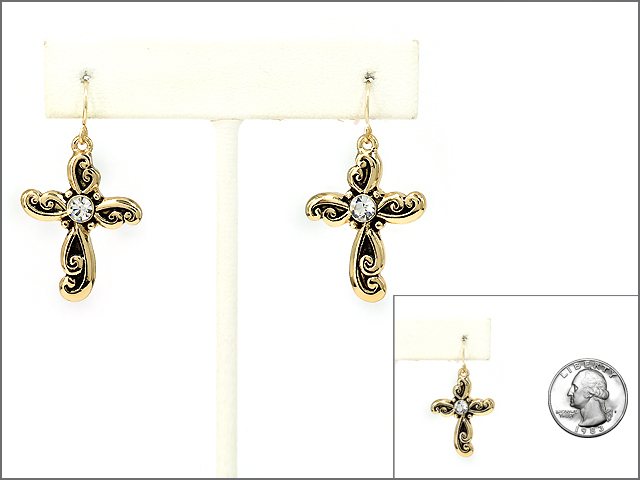 Tags: Earrings, Cross, Designer Inspired, Gold, Fish Hook