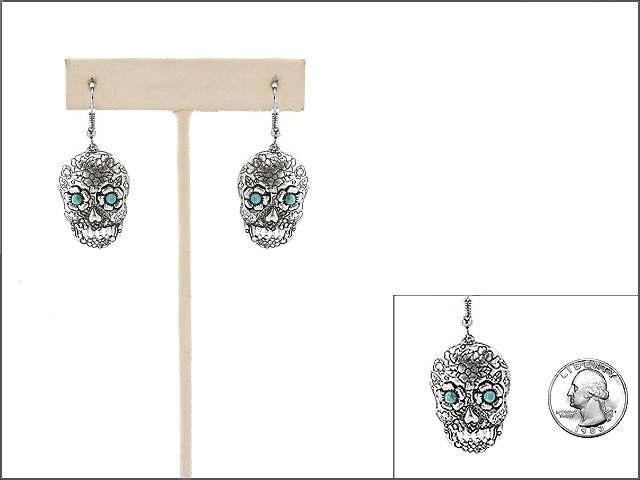 Tags: Earrings, Sugar Skull, Western, Turquoise, Silver Burnish, Fish Hook