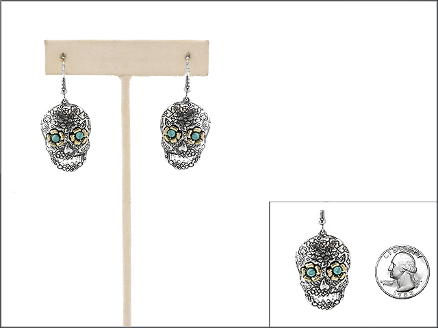 Tags: Earrings, Sugar Skull, Western, Turquoise, Two Tone, Fish Hook