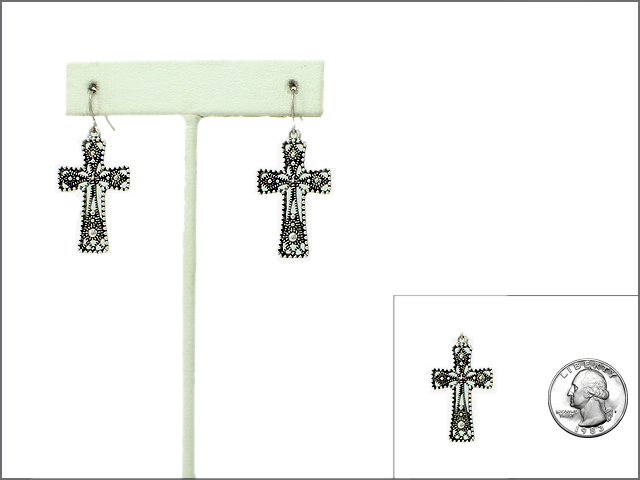 Tags: Earrings, RELIGIOUS, Silver, Phrases / Verses / Christianity, Fish Hook, Cross
