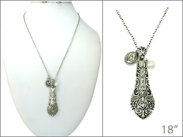 Tags: RELIGIOUS, Necklace, Charms, Designer Inspired, Inspiration, Lobster, Pearl, Themed, Silver Burnish, Black, Cream, Short