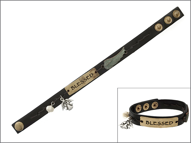 "BLESSED" ANGEL WING INSPIRATION LEATHER BR.